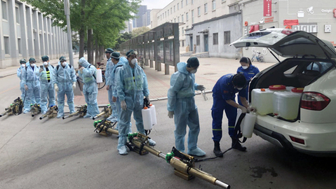 5月7日,沈阳市蓝天救援队走进东北大学开展防疫消毒工作,22名市蓝天救援队员着专业防护服、护目镜等防护装备,背负重达四十斤的脉冲喷雾机,对我校逸夫教学馆和大成教学馆进行了全方位、全覆盖、无死角的义务防疫消毒作业。