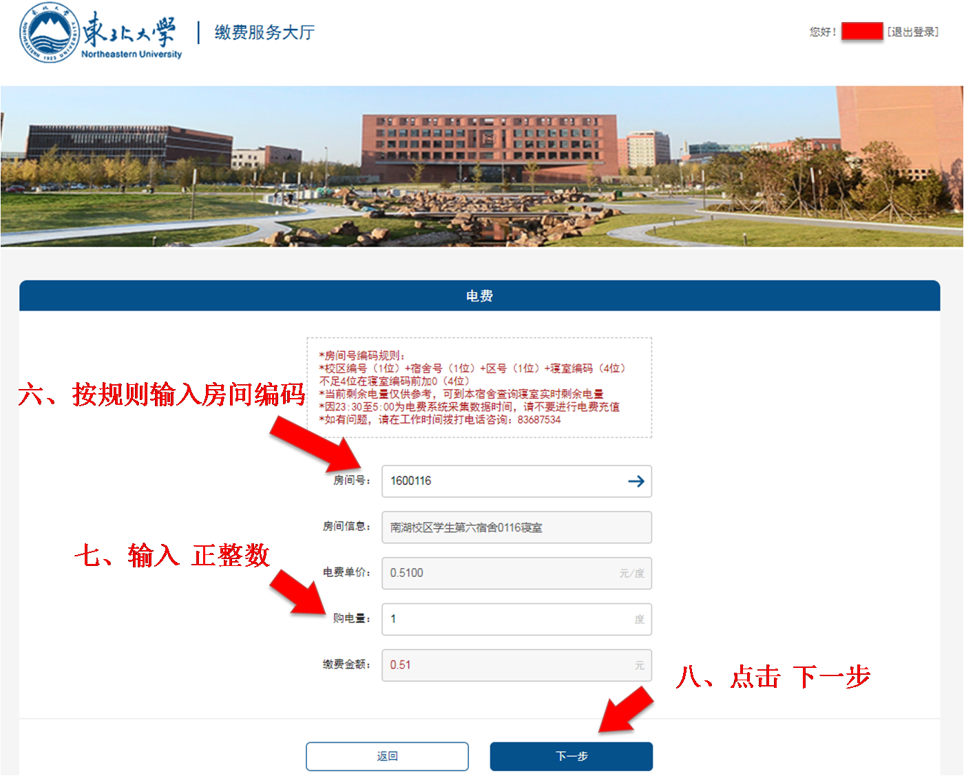 校外用户电脑电费充值流程