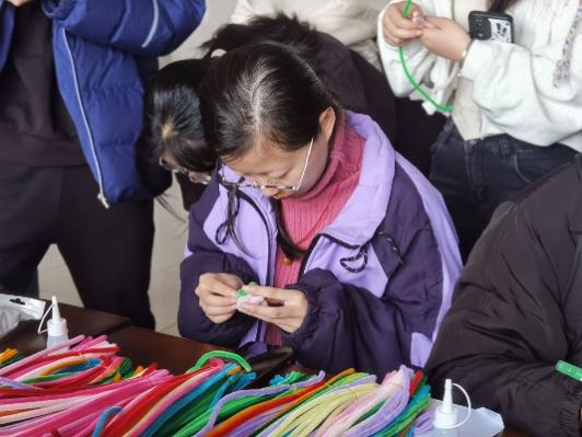 活动现场,丰富多彩的创作素材为同学们提供了充分发挥个人创意平台:扭扭棒编织生态图案;秀丽笔勾勒自然图景;镜头聚焦春日生机;指尖印章点缀枯萎枝桠。同学们将环保的宣言化作行动,用奇思妙想与春日草木同频共振。