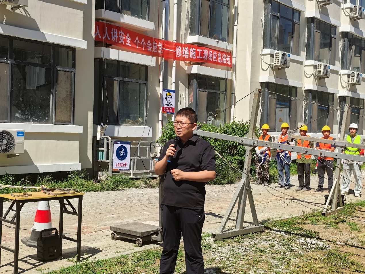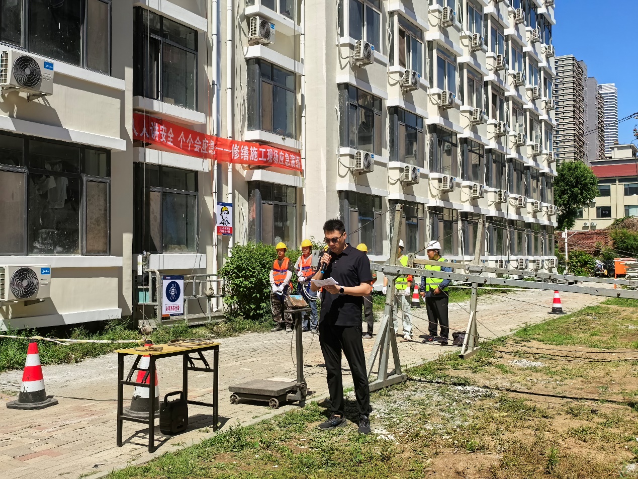 第24个全国“安全生产月”来临之际,为落实好《东北大学关于开展2025年“安全生产月”活动的通知》精神,结合修缮工程实际,后勤管理处于6月20日下午在南湖校区学生第三宿舍施工现场组织开展“人人讲安全 个个会应急”修缮施工安全应急演练,校内各修缮施工项目派遣相关人员到场参加。